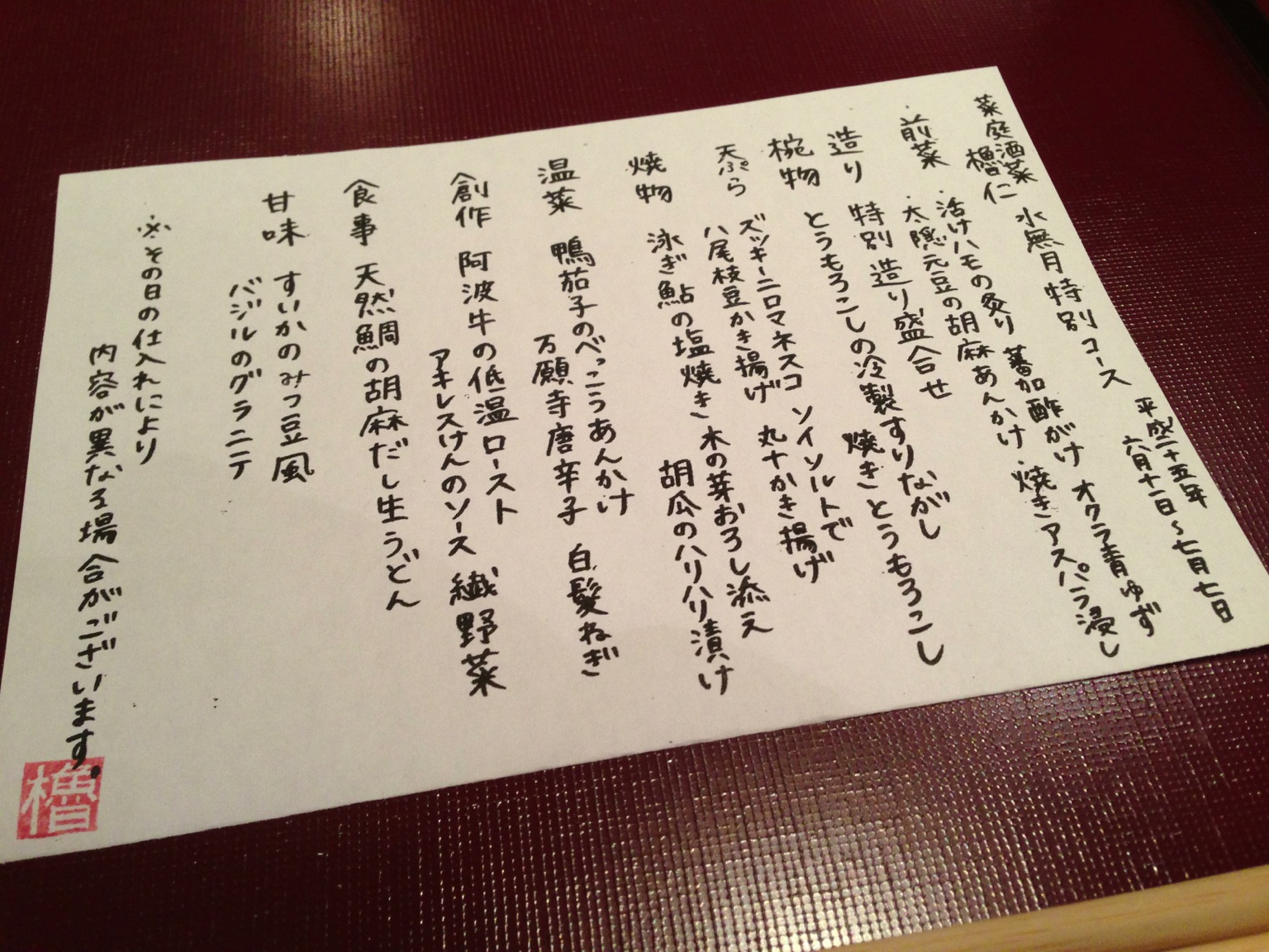 6月の特別コースのメニューです。